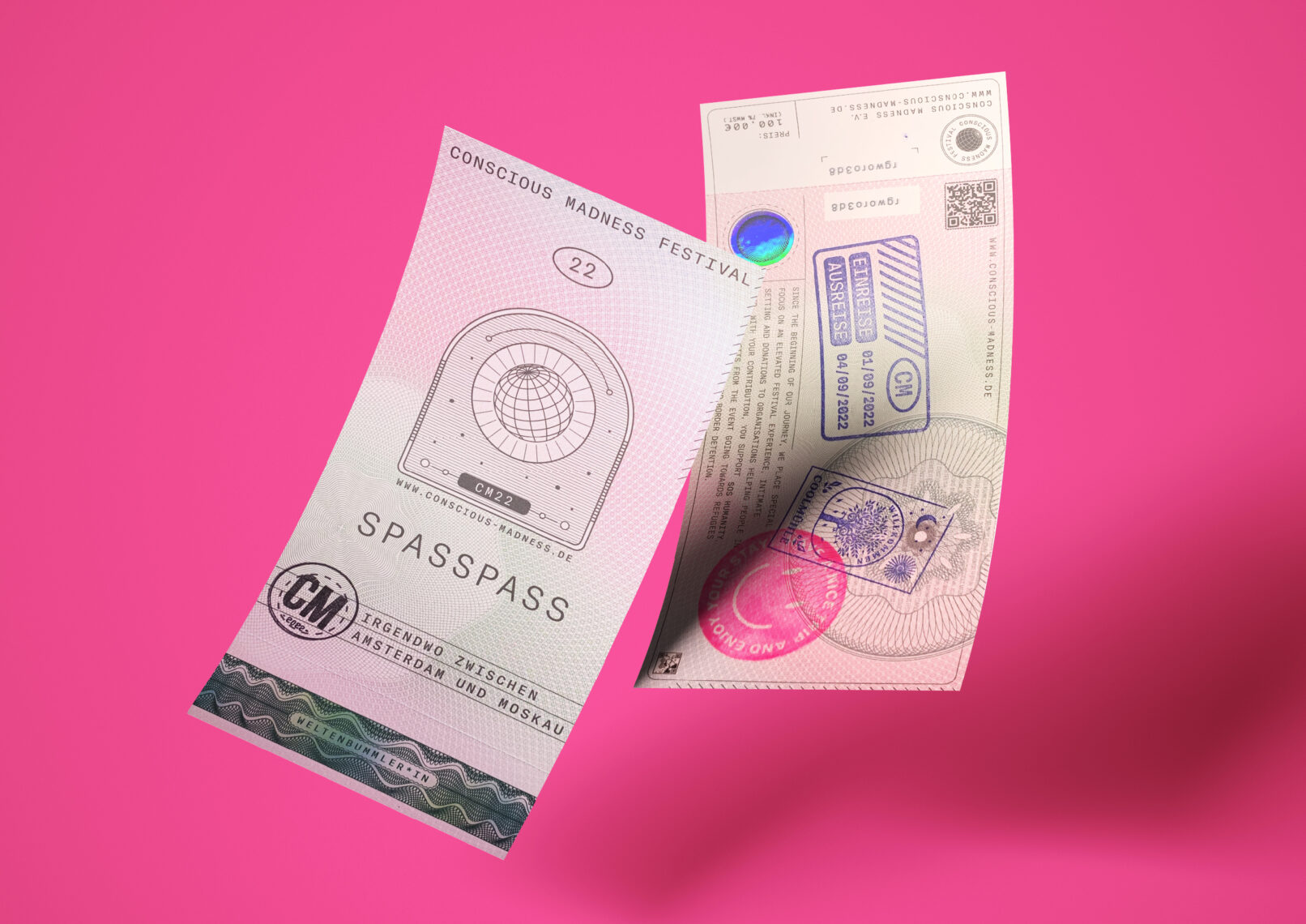 Seit 2018 bin ich beim Conscious Madness Festival tätig und gestalte jährlich in Zusammenarbeit mit Tobias Kaiser die Eintrittskarten. Diese wurden in verschiedenen Druckverfahren umgesetzt, vor allem im Siebdruck, aber auch mit weiteren medialen Ansätzen, wodurch sich über die Jahre eine eigenständige visuelle Tradition des Festivals entwickelt hat.