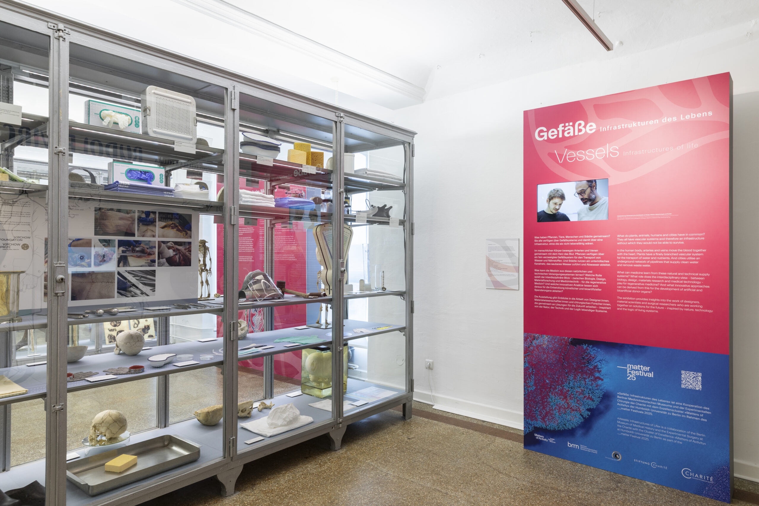 Die Ausstellung zeigt, wie Gefäße funktionieren, wie sie sichtbar gemacht, genutzt und nachgebildet werden können. Im Zentrum steht der interdisziplinäre Austausch  zwischen Design, Biologie, Medizintechnik und Architektur – mit Blick auf zukünftige Lösungen für künstliche und bioartifizielle Organe. Dabei wird die Verbindung zwischen natürlichen Gefäßen und technischen Infrastrukturen wie Wasserversorgung oder Gebäudekühlung sichtbar gemacht. Die Exponate treten zudem in Dialog mit der historischen Sammlung Rudolf Virchows.