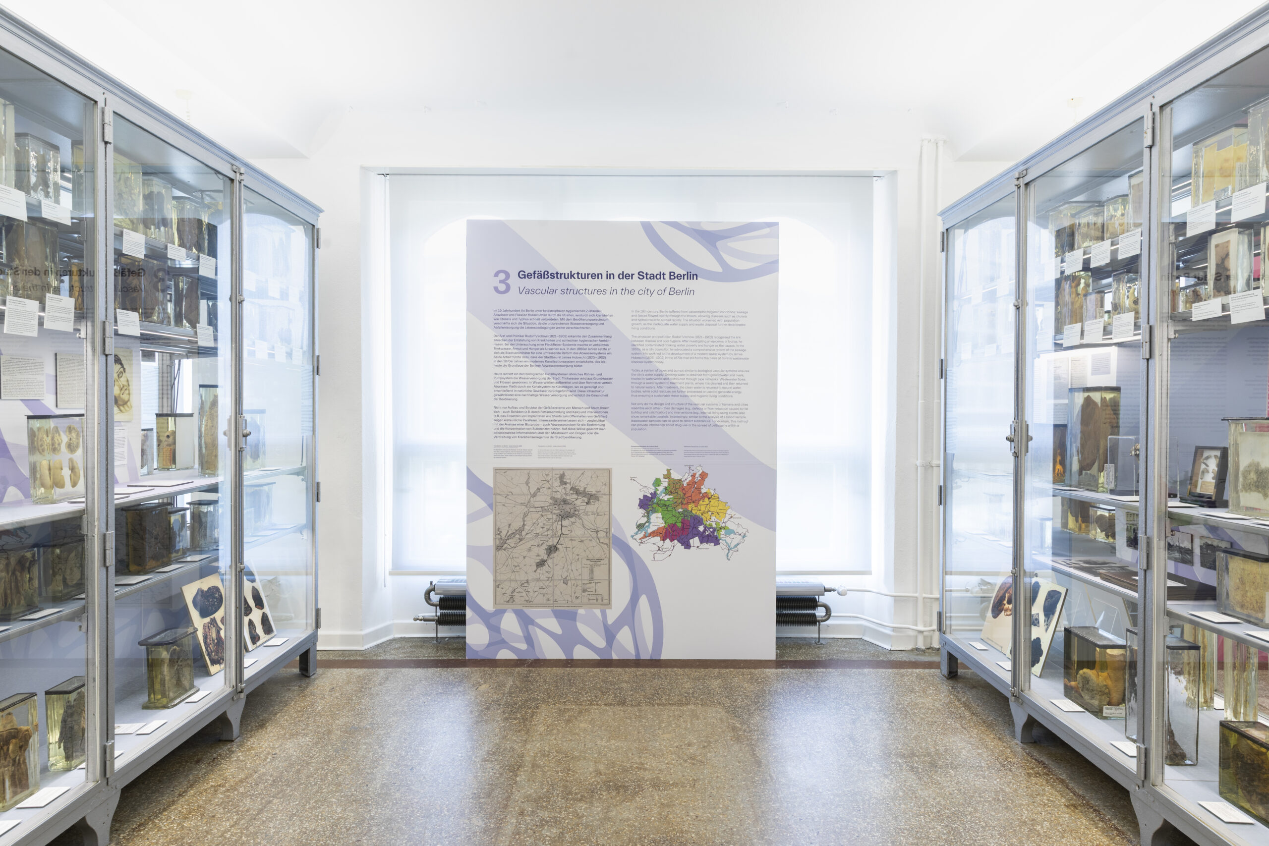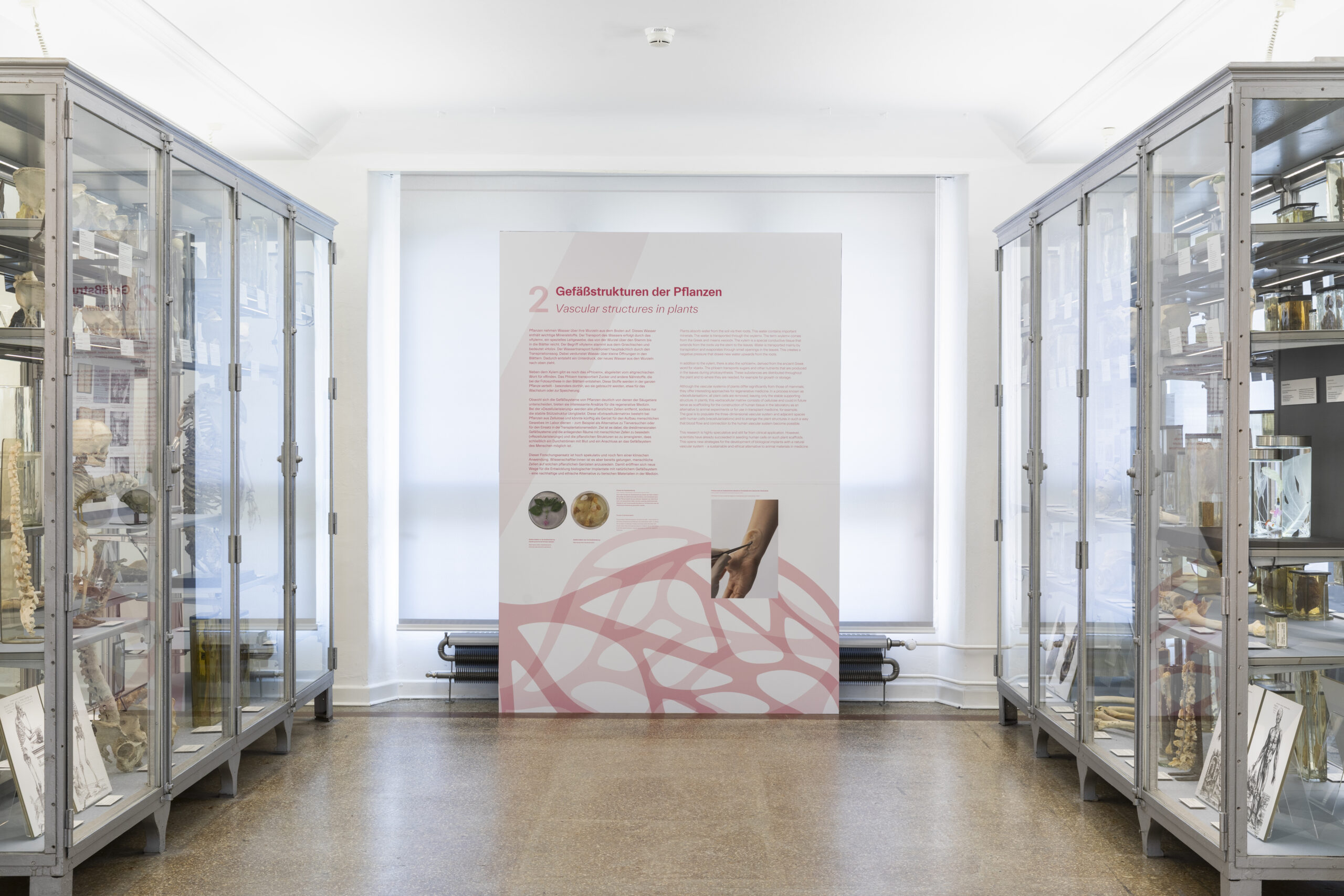 Für diese interdisziplinäre Ausstellung über biologische und technische Gefäßsysteme habe ich die räumliche und grafische Gestaltung entwickelt und umgesetzt. Die Ausstellung thematisiert die Gemeinsamkeiten von Pflanzen, Tieren, Menschen und Städten – insbesondere ihre Gefäßsysteme, ohne die ein Leben bzw. Funktionieren nicht möglich wäre.