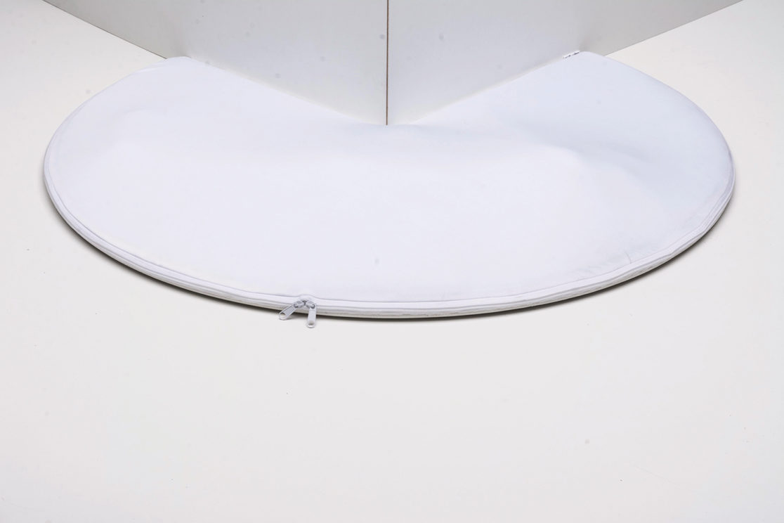 The four different circular shapes can adapt to either corners, edges or an open space. These are accompanied by subtle color variations such as black, olive and clear white.