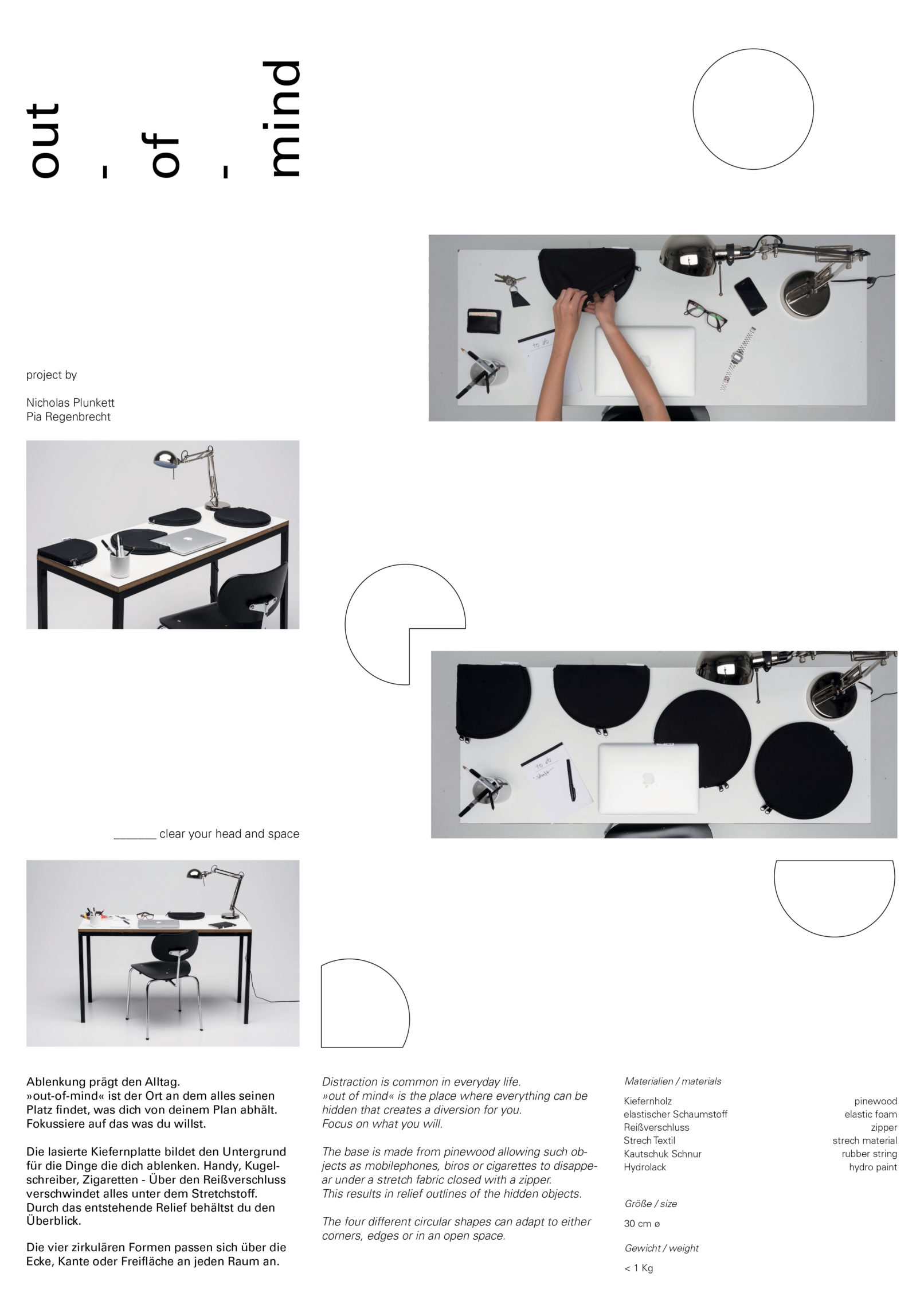 Distraction is common in everyday life. »out of mind« is the place where objects can be hidden that create a distraction or a diversion. Focus on what you will.