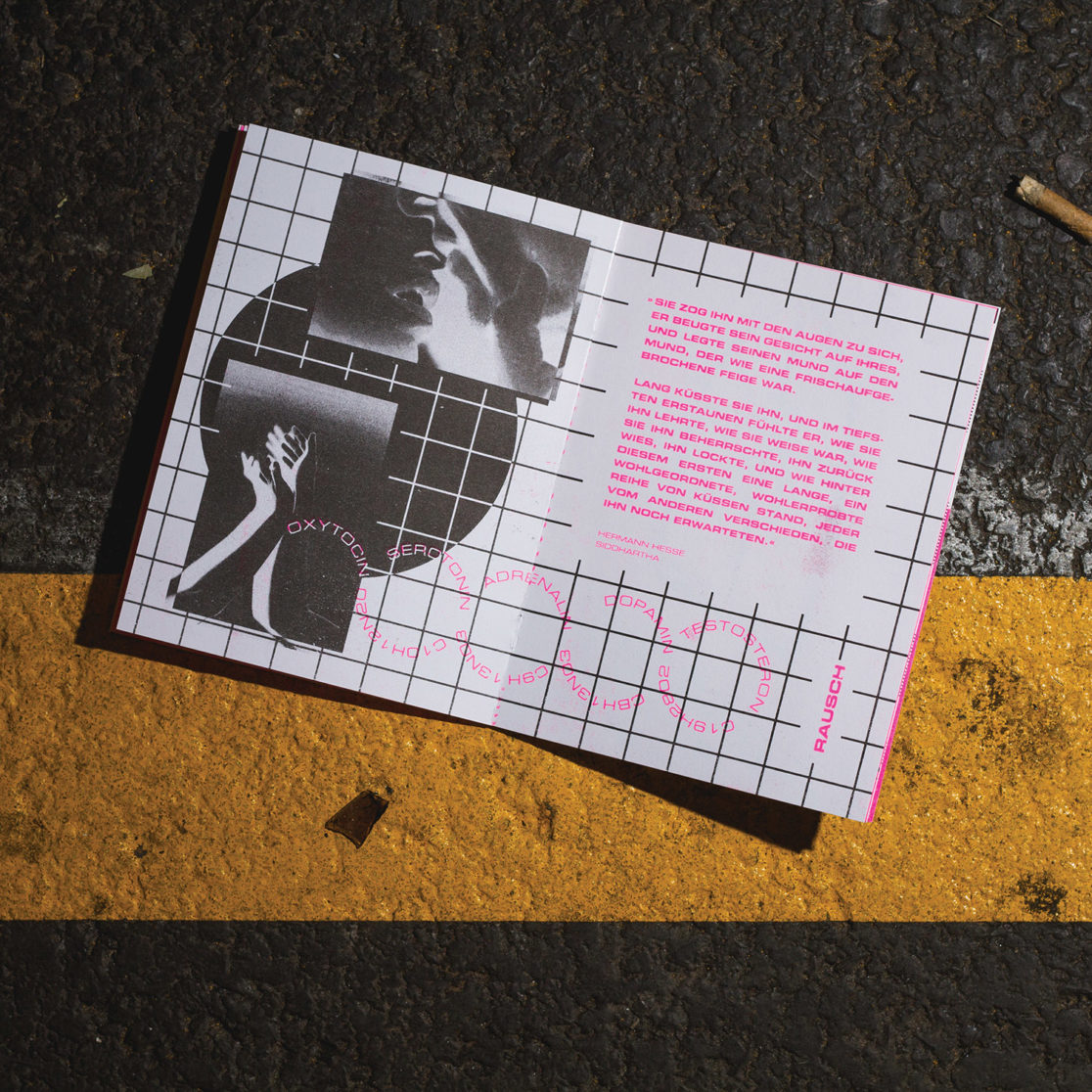 The word »Rausch« is difficult to translate directly to English, as it has several different meanings in German. In the issue, different stages of euphoria are shown, exorcism and love. Ecstasy. 45 issues were printed.